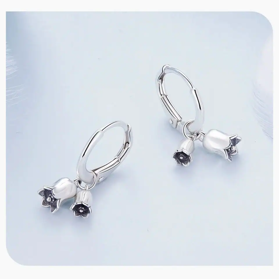 Μοντέρνα σκουλαρίκια κρίκοι Bamoer, κατασκευασμένα από οξειδωμένο ασήμι 925.