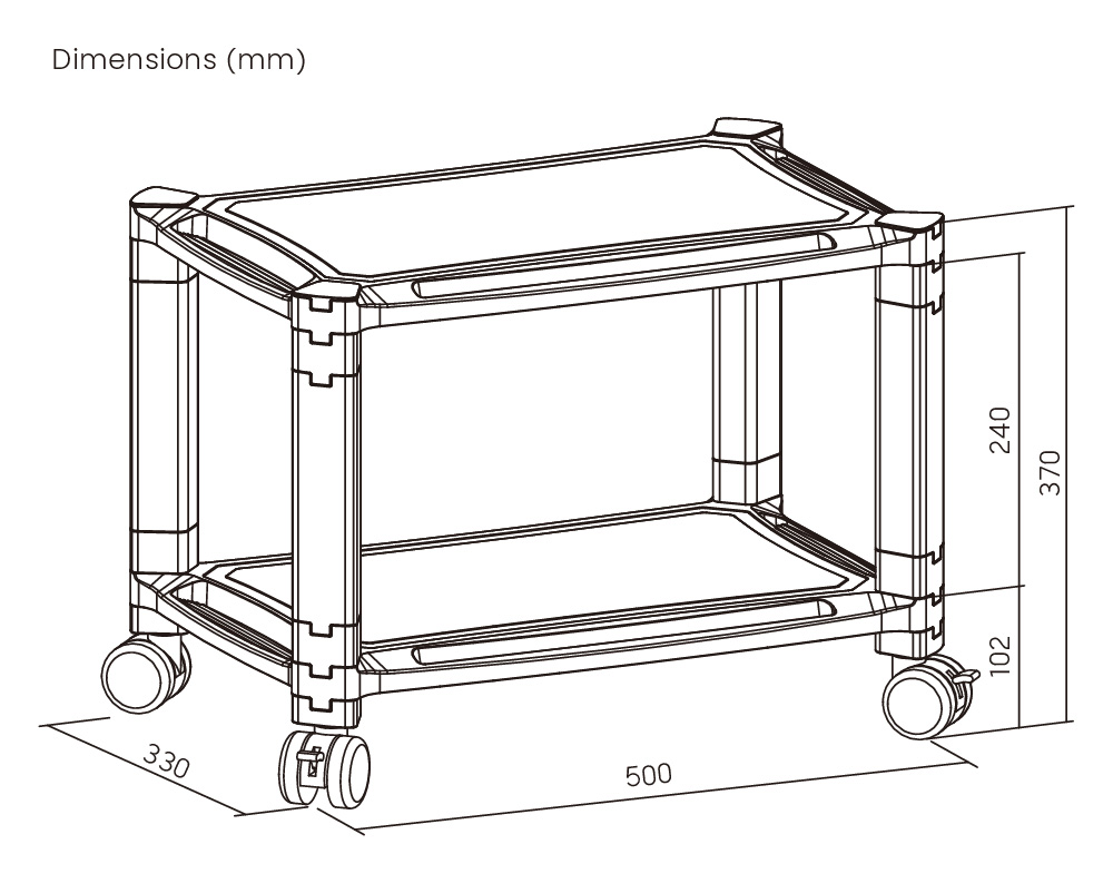 BRATECK ραφιέρα δαπέδου AMS-4L με ροδάκια, 2 ράφια, 50x33x37cm, έως 10kg, μαύρη