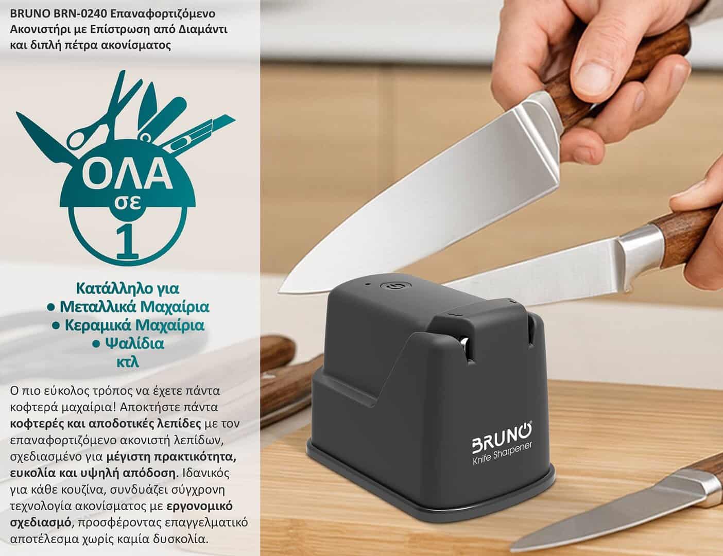 BRUNO BRN-0240 Επαναφορτιζόμενο Ακονιστήρι με Επίστρωση από Διαμάντι και διπλή πέτρα ακονίσματος