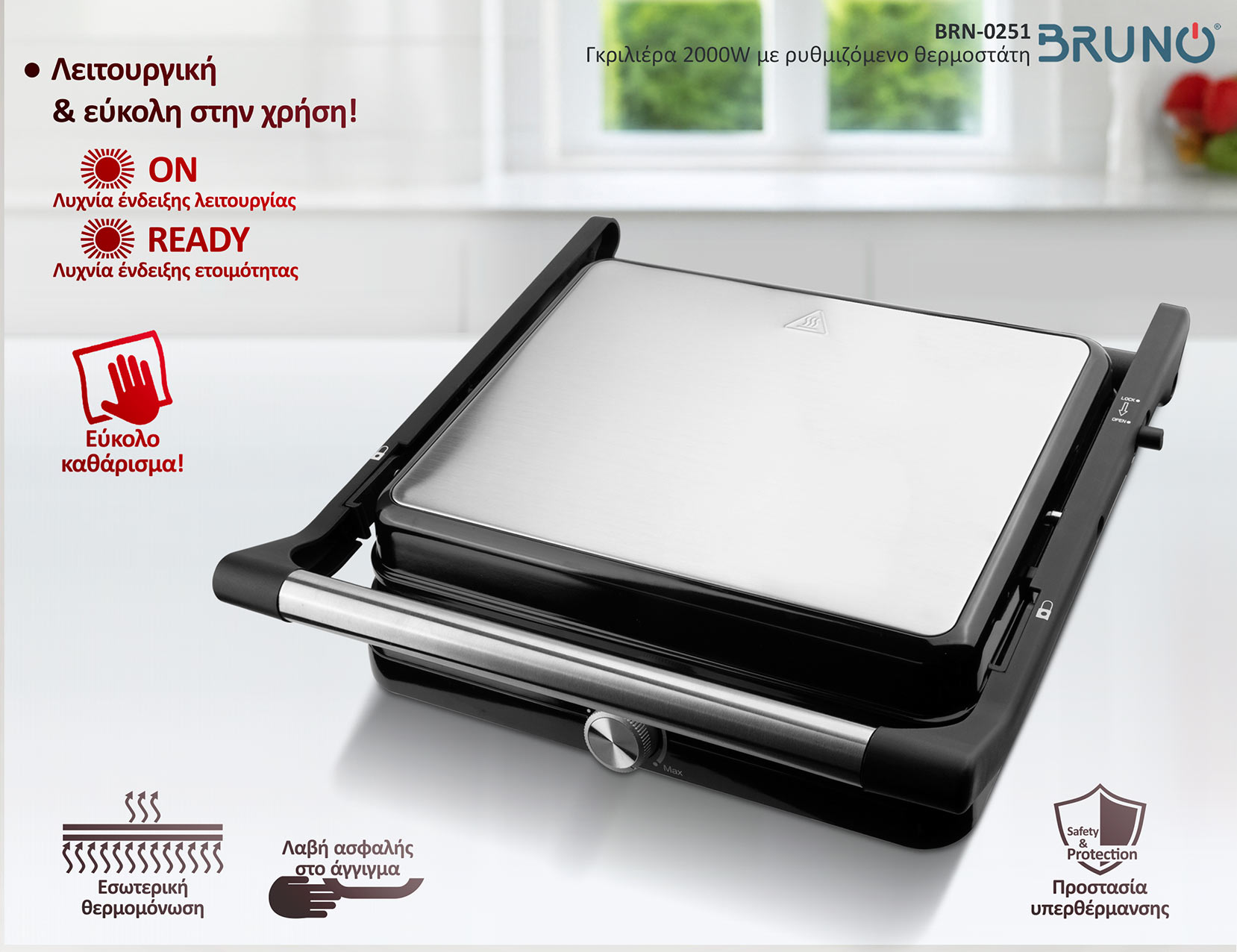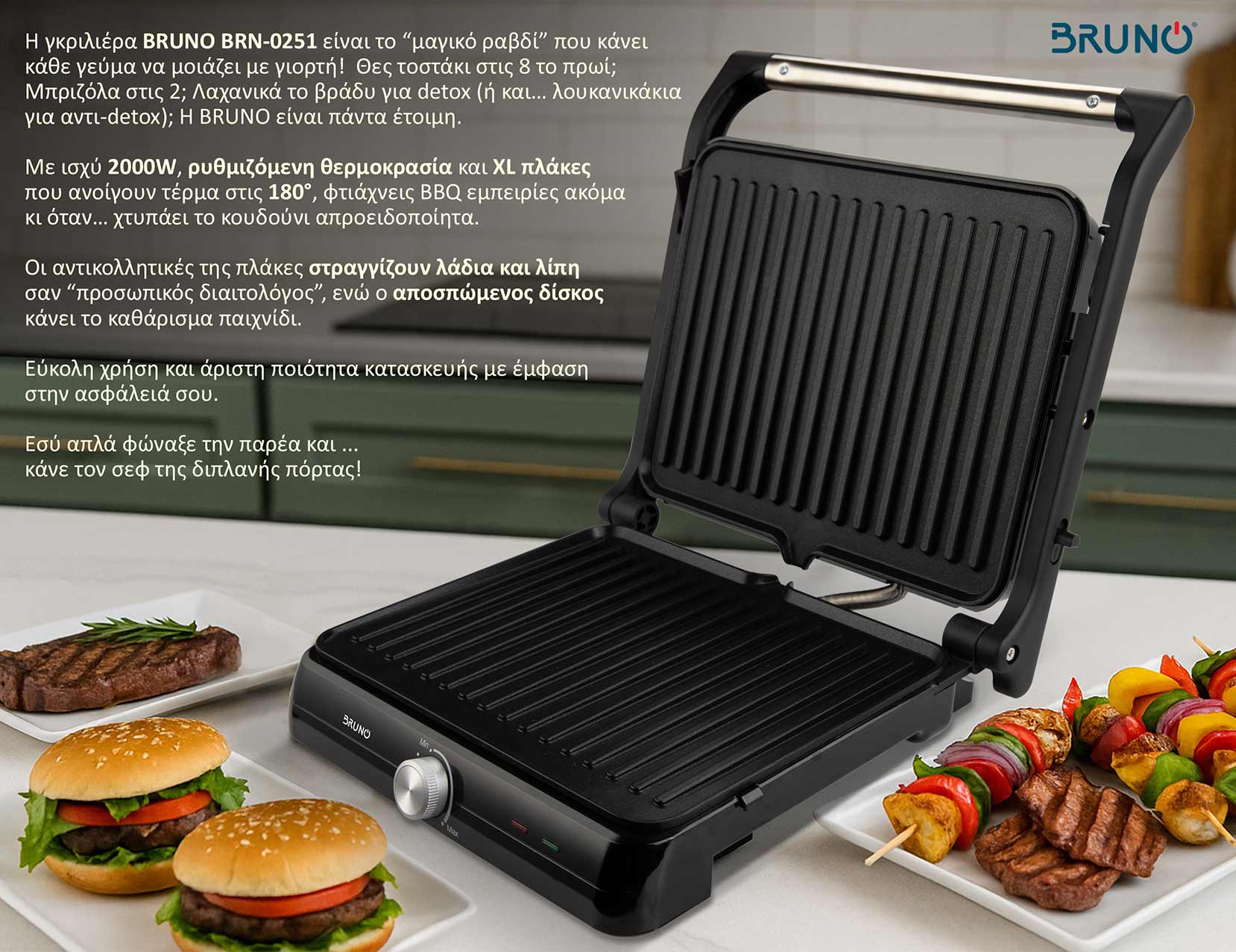 Η Γκριλιέρα BRUNO BRN-0251 αποτελεί ιδανική λύση για ετοιμασία πληθώρας σπιτικών snack, σάντουιτς, τοστ, κρεατικών, αλλαντικών, λαχανικών κτλ γρήγορα και εύκολα.