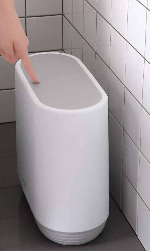 Πλαστικός κάδος απορριμμάτων με χωρητικότητα 10 λίτρα. Το καπάκι του ανοίγει προς τα έξω, ώστε να μην καταλαμβάνει χώρο από τον οφέλιμο, ασφαλίζει και ανοίγει εύκολα με το πάτημα ενός κουμπιού. Επίσης, ο μακρόστενος σχεδιασμός του κάδου προσφέρει μεγάλο άνοιγμα, διευκολύνοντας την απόρριψη μεγαλυτέρων αντικειμένων και το άδειασμα από φαράσι.