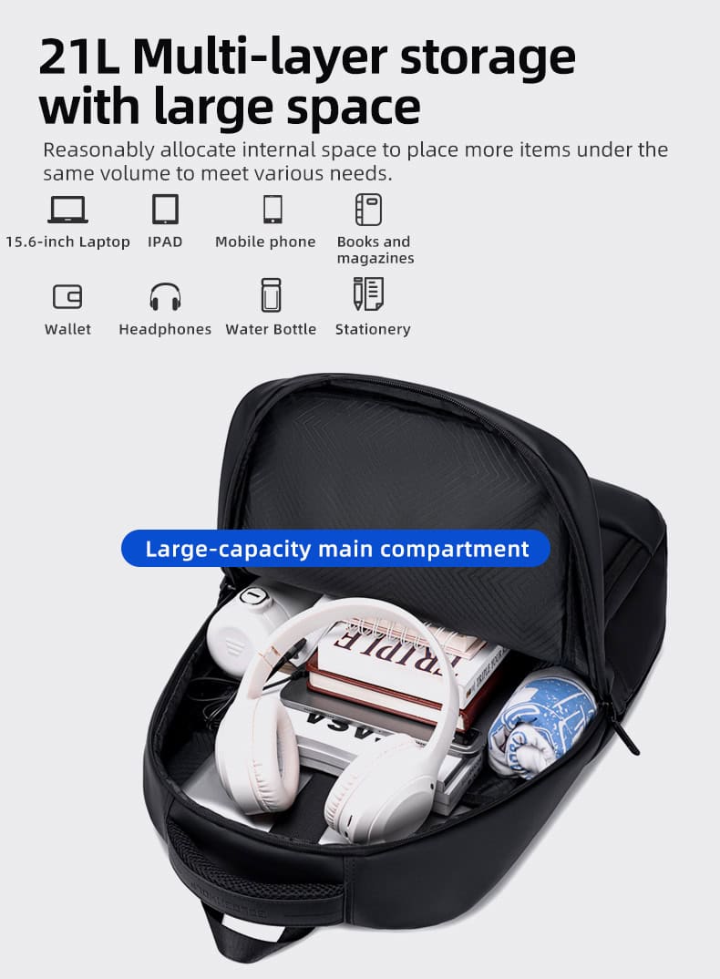 GOLDEN WOLF τσάντα πλάτης GB00707 με θήκη laptop 15.6″, 21L, μαύρη