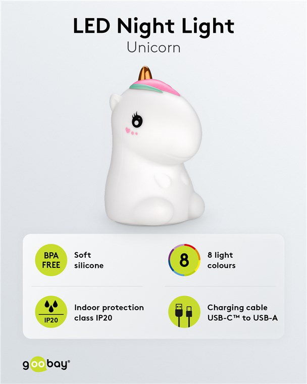 GOOBAY LED φωτιστικό νυκτός μονόκερος 61649, RGB, επαναφορτιζόμενο, λευκό