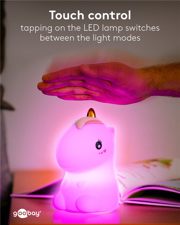 Χαρίστε στο παιδικό δωμάτιο μια ζεστή και χαλαρωτική ατμόσφαιρα με το LED φωτιστικό νυκτός της Goobay σε σχήμα χαριτωμένου μονόκερου.