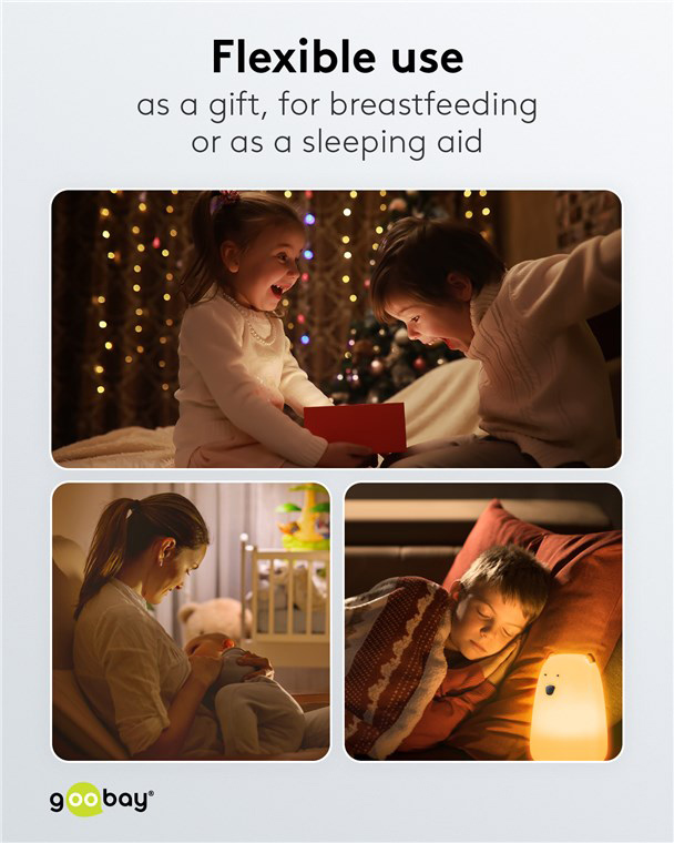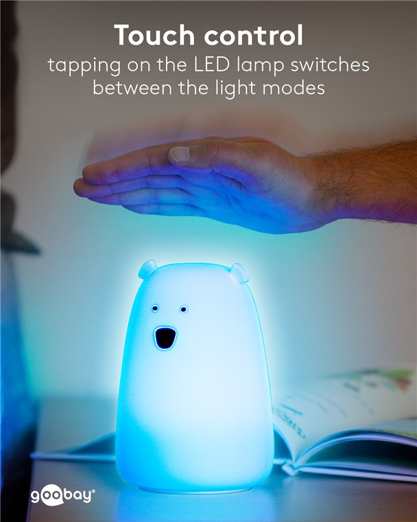 Χαρίστε στο παιδικό δωμάτιο μια ζεστή και χαλαρωτική ατμόσφαιρα με το LED φωτιστικό νυκτός της Goobay σε σχήμα χαριτωμένης πολικής αρκούδας.