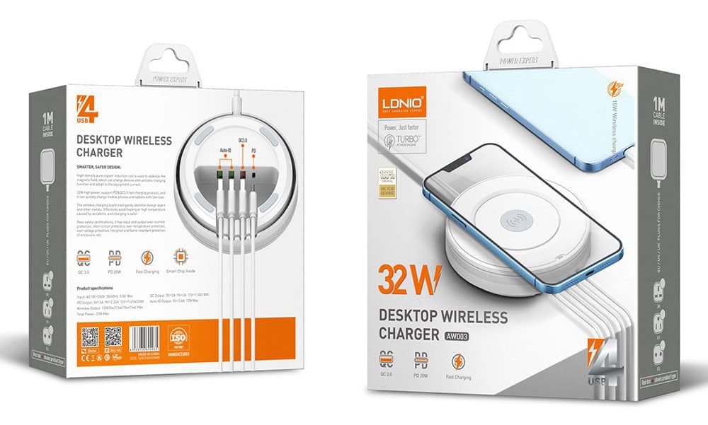 Υψηλής απόδοσης σταθμός φόρτισης της LDNIO, κατασκευασμένος από ανθεκτικό υλικό και συμβατός με όλες τις συσκευές που φορτίζουν ασύρματα ή μέσω USB θύρας.