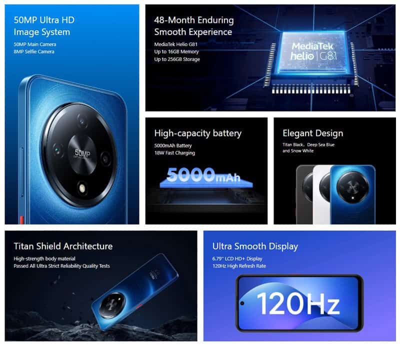 Μοντέρνο και όμορφο smartphone Mblu 22 της MEIZU με μεγάλη οθόνη 6.79″, οκταπύρηνο επεξεργαστή και λειτουργικό Android 15.