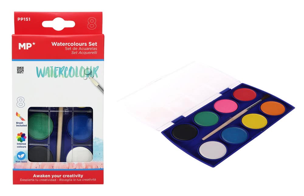 MP σετ νερομπογιές PP151 με πινέλο & κασετίνα, 8 χρώματα