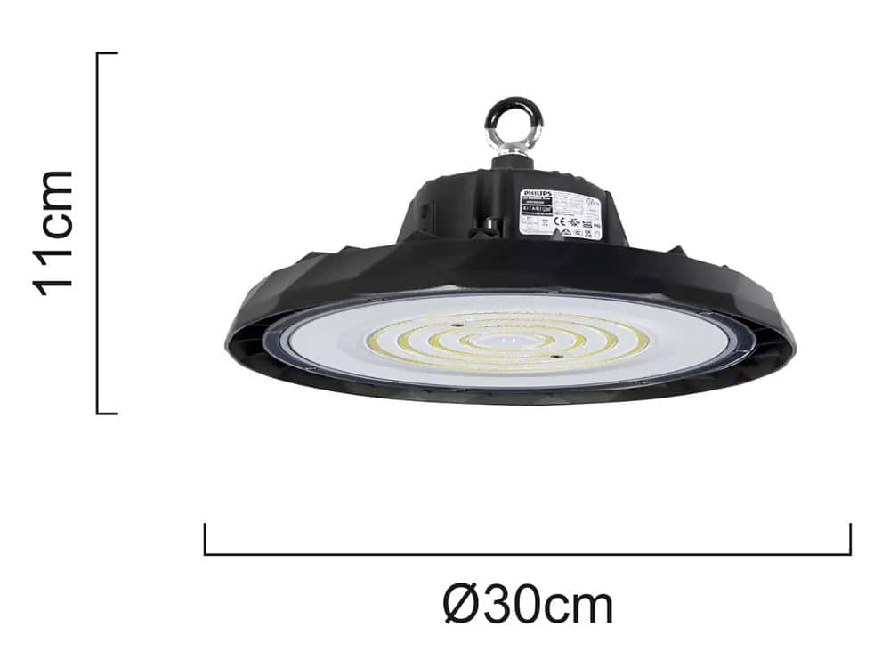 Με ισχύ 100W και φωτεινότητα 15000 lumens, προσφέρει έντονο, καθαρό φωτισμό ψυχρού λευκού χρώματος (6500K), εξασφαλίζοντας άριστη ορατότητα σε αποθήκες, συνεργεία, καταστήματα και βιομηχανικές εγκαταστάσεις.
