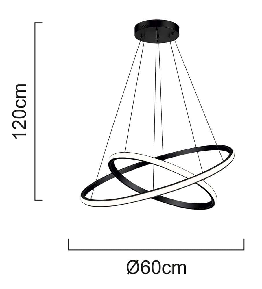 POWERTECH LED φωτιστικό οροφής PT-1527, 40W, 4000K, Φ60x120cm, μαύρο