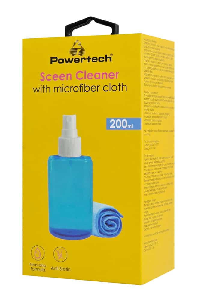 POWERTECH σπρέι καθαρισμού οθόνης PT-1312 με πανί μικροϊνών, 200ml
