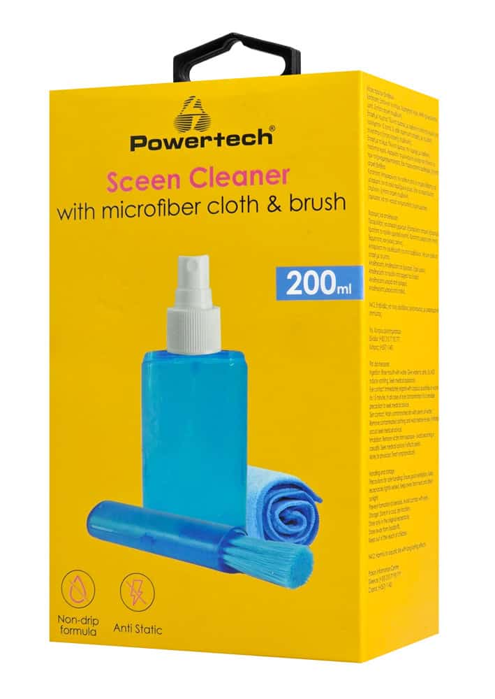 Το σετ καθαρισμού της Powertech αφαιρεί αποτελεσματικά σκόνη, δαχτυλιές και λοιπά ξένα σώματα από την οθόνη της συσκευής σας.