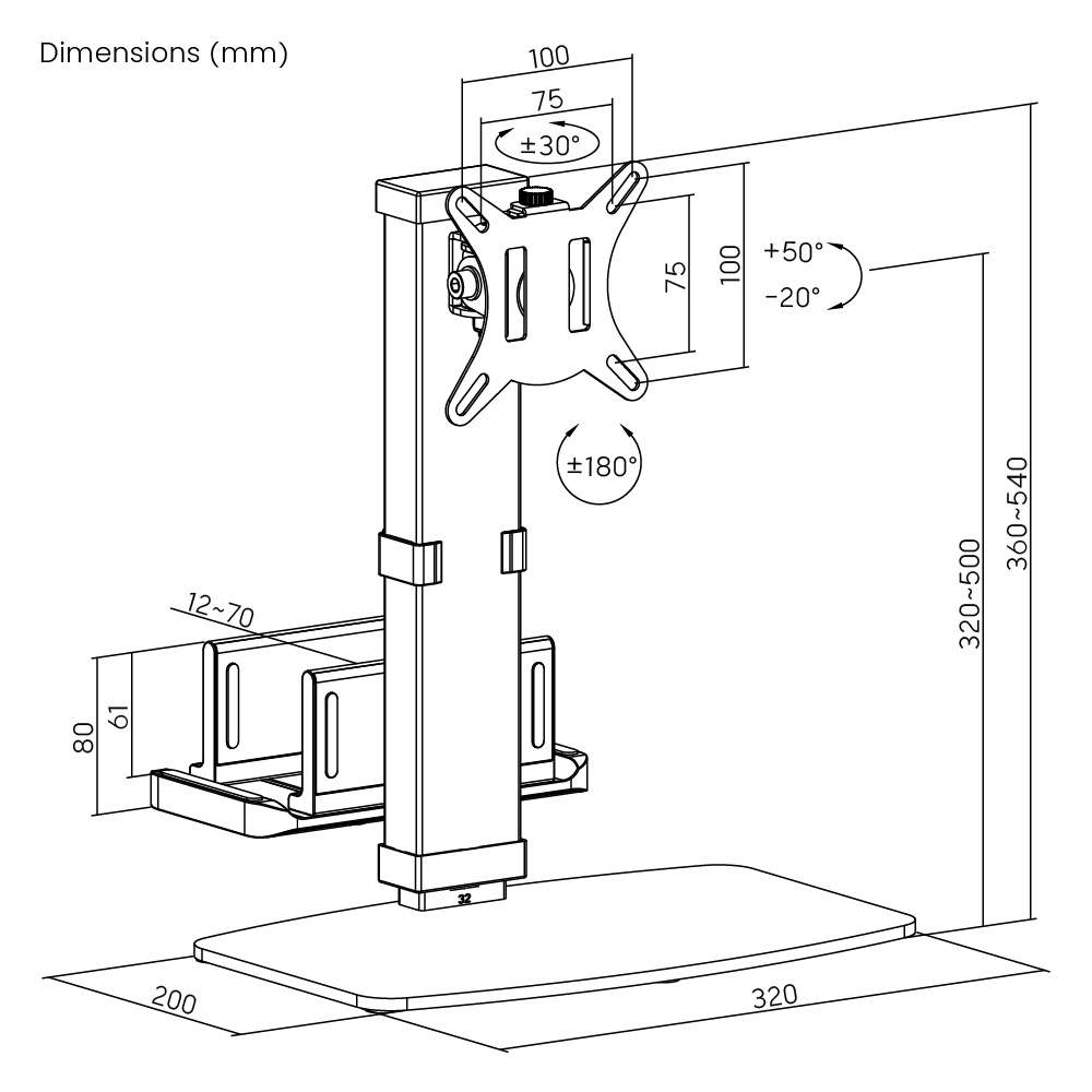 POWERTECH βάση γραφείου οθόνης PT-1449 με βάση mini PC, 17-32″, έως 8kg