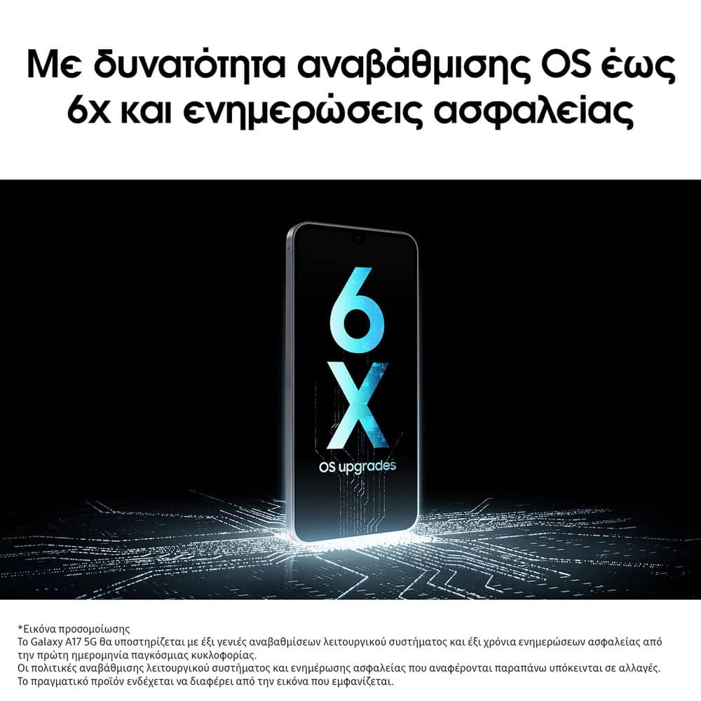 Με τον οκταπύρηνο επεξεργαστή 2,4 GHz, το Galaxy A17 5G προσφέρει ομαλή ροή HD, γρήγορο gaming και απρόσκοπτη κοινοποίηση στα μέσα κοινωνικής δικτύωσης.