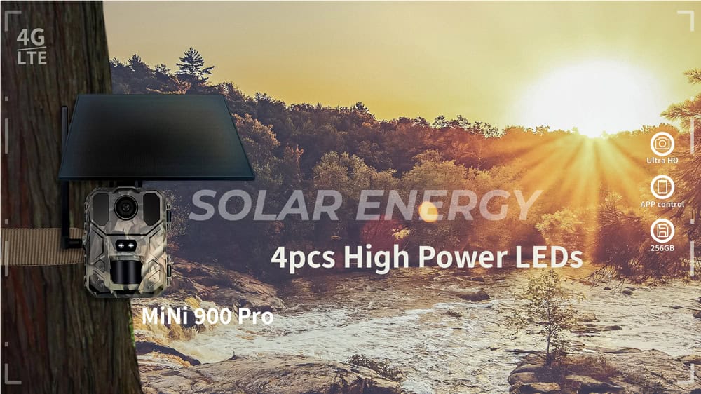 SUNTEK smart ηλιακή κάμερα κυνηγού Mini 900 Pro, PIR, 4G, 30MP/2K, SD, IP65