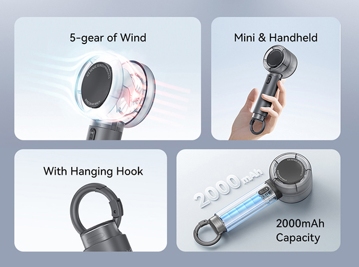 Μίνι φορητός ανεμιστήρας της Usams με 5 επίπεδα ταχύτητας του αέρα, που σας επιτρέπουν την προσαρμογή της ροής της ταχύτητας του αέρα ανάλογα με τις ανάγκες σας