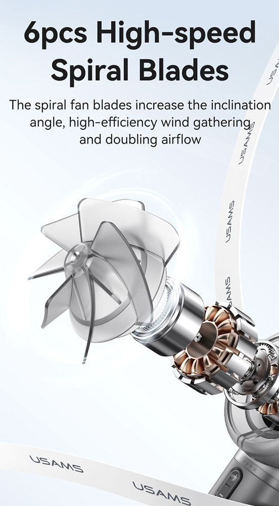 USAMS φορητός ανεμιστήρας LU01 με 5 ταχύτητες, 2000mAh, λευκός