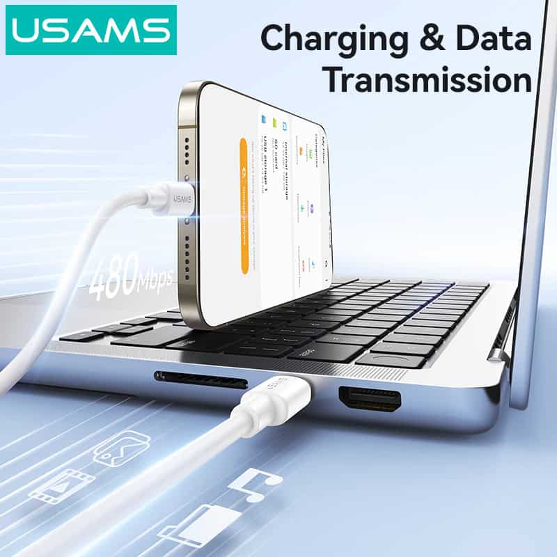 Καλώδιο φόρτισης και μεταφοράς δεδομένων USB-C σε USB-C της Usams. Υποστηρίζει φόρτιση με απόδοση έως 60W και μεταφορά δεδομένων με ταχύτητα έως 480Mbps.