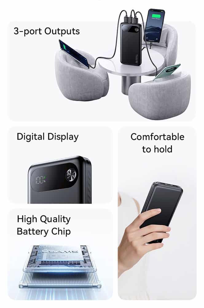 USAMS power bank CD249 με οθόνη, 3x θύρες εξόδου, 10000mAh, PD20W, μαύρο