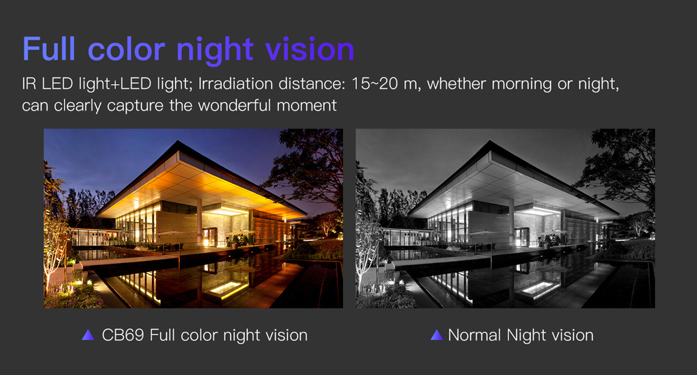 Minimum illumination: 0.5 Lux(Color mode), 0.1 Lux(B&W mode)